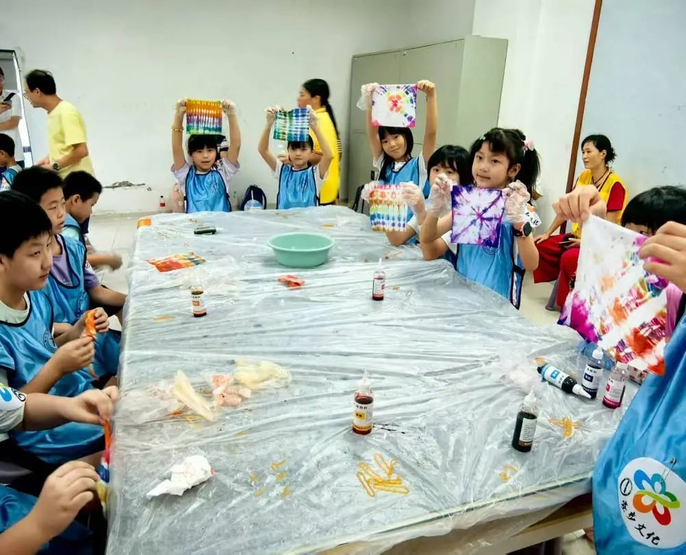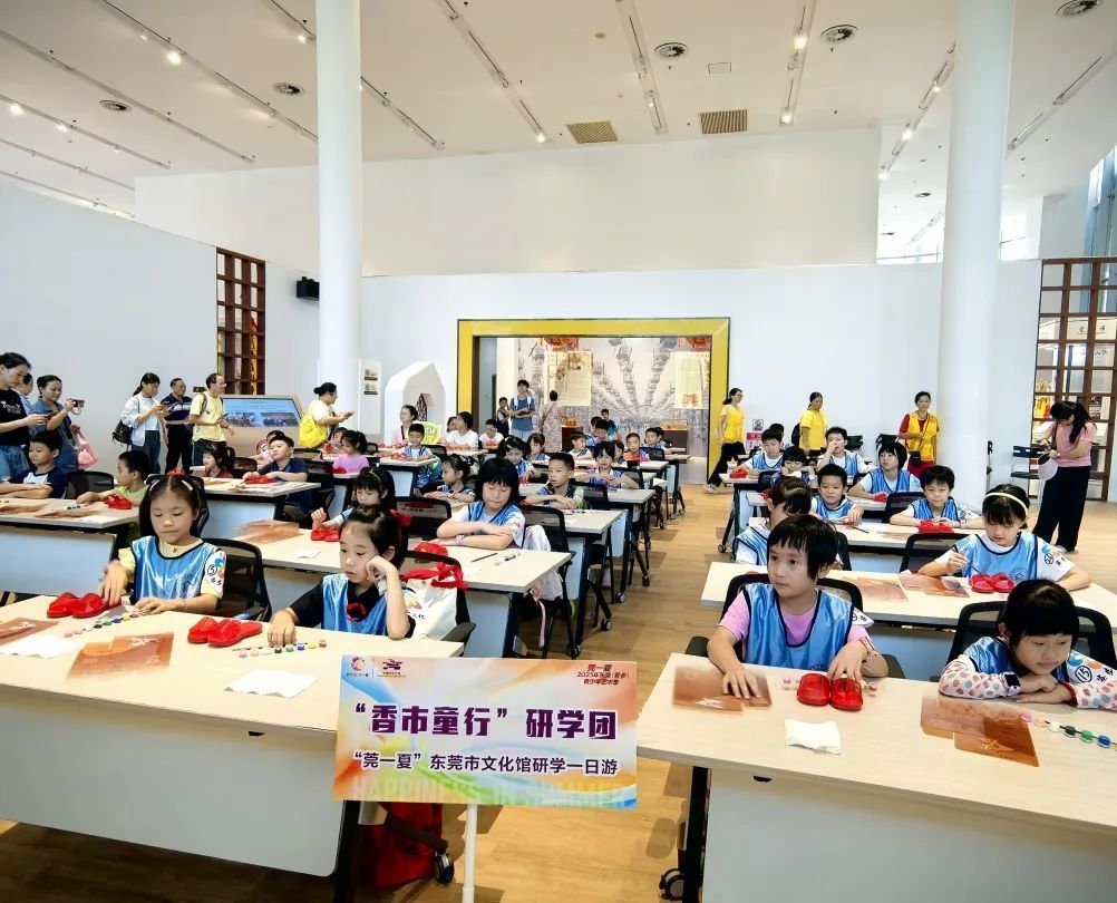 7月17日,“香市童行”研学团30名“小候鸟”们一同前往东莞市文化馆开展研学一日游活动,大家一同观看非遗展厅,认知东莞非遗故事。体验红漆描花传统木屐描绘上色、手工扎染活动,感受艺术之美。