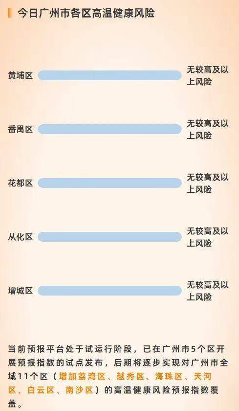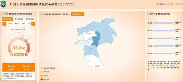 8月13日,广州市疾病预防控制中心(市卫生监督所)推出“广州市高温健康风险预报平台”聚财略,可实时预报各地区进入夏季以来未来72小时高温健康风险特征。
