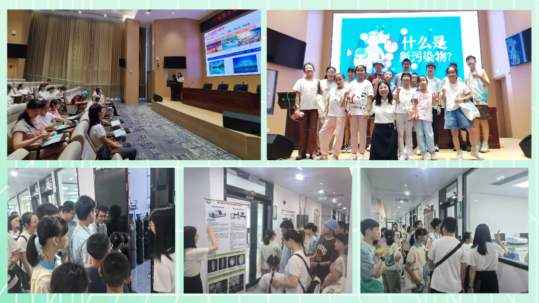 第二天,队伍来到了粤港澳生态环境科学中心,走进汇报厅和实验室,跟着老师的步伐揭秘隐藏在生活中每个角落的新污染物。“原来平时用的一些塑料用品、化妆品里,可能藏着看不见的新污染物!”小朋友们听得格外认真,还积极举手回答问题,并分享了自己的环保小妙招。