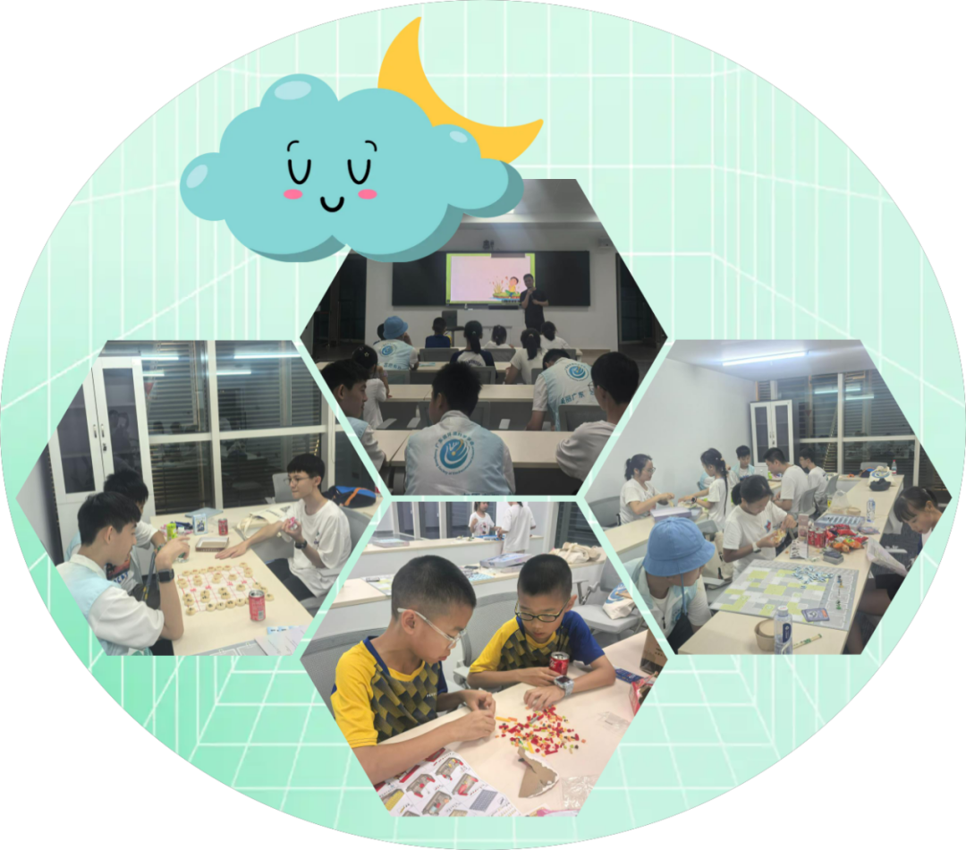 夜幕降临,温馨的夜营活动开始,在AQI科普课堂上,老师精彩的讲述吸引着小朋友们好学的目光,用生动的案例和有趣的动画,向小朋友们介绍了与生活息息相关的空气质量,号召大家保护环境从小事做起。上课结束后趣味桌游登场,原本素不相识的各位小朋友在游戏互动中渐渐熟悉,收获了满满的友谊。