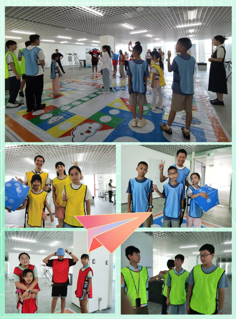 超级飞行棋游戏闪亮登场:各位大朋友小朋友化身“小飞机”在巨大的棋盘上斗智斗勇,掷骰子、走步数、答问题,在协作中比拼知识储备。“我答对啦!我们又进一步啦!”小朋友欢呼雀跃使棋盘变成了快乐的知识乐园。