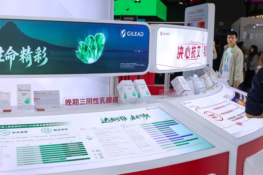 第八届进博会上,医疗器械及医药保健展区展示的晚期三阴性乳腺癌药